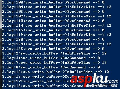 比如要搜索關鍵字write,則輸入write回車之后,搜索到的結果如下(僅截取部分,這里由于隱私,日志文件是俺造的,只是數據量比較大,內容純屬虛構~~):