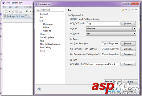本文實例講述了Go語言eclipse環境搭建的方法。分享給大家供大家參考,具體如下: