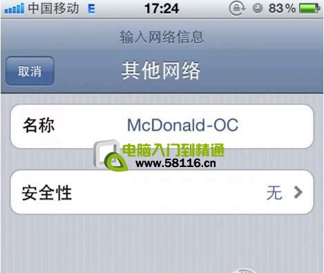 一、掏出你們的iPhone4,不管什么版本,滑動解鎖先,然后跟著我做:“設置”――“Wi-Fi”(國行應該寫的是“無線局域網”),選擇“其他" ,見下圖。