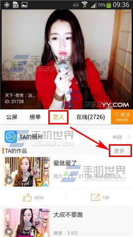 2)在【藝人】欄點擊【更多】就可以查看到TA的趣拍作品了。(如下圖)