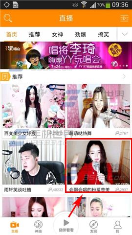 1)打開手機YY,比如你要查看某個主播的趣拍作品,就點擊進入TA的直播間;(如下圖)
