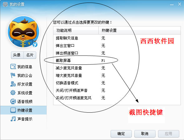 找到熱鍵設置,如果大家看到了,點擊熱鍵設置,可以在鍵盤上隨意輸入您想要的快捷鍵即可,點擊應用。看下圖