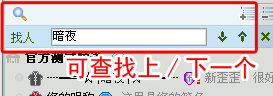 其次,在頻道內(nèi)找人,只需點擊【找人】,然后輸入用戶名的部分,就可以查找該用戶,可以查找上/下一個,并且自動定位到用戶。可以使用它方便的查找用戶,然后使用右鍵菜單與該用戶進行私聊或其他操作,參見下圖:
