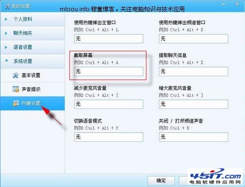 然后在“我的設置”窗口,這是需要點擊一下“熱鍵設置”(也就是快捷鍵設置)就會在右邊出現很多快捷鍵設置輸入框。