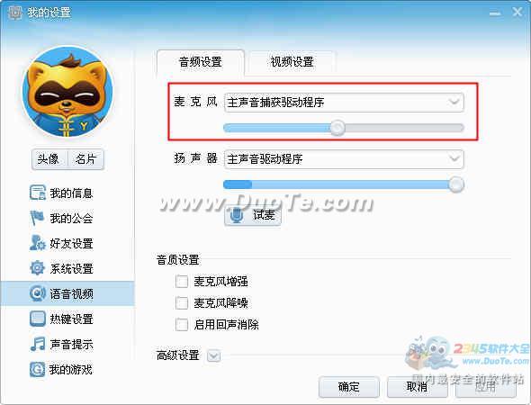 歪歪語音聲卡設置: