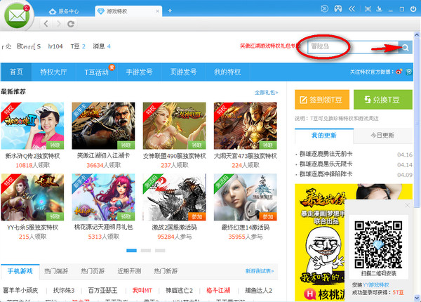然后在游戲特權首頁搜索“冒險島”
