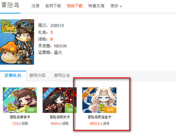 冒險島聚寶盆卡激活說明: