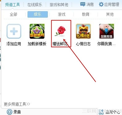 這個(gè)鮮花位置--需要各位用戶打開YY,進(jìn)入頻道, 點(diǎn)擊右下角應(yīng)用中心