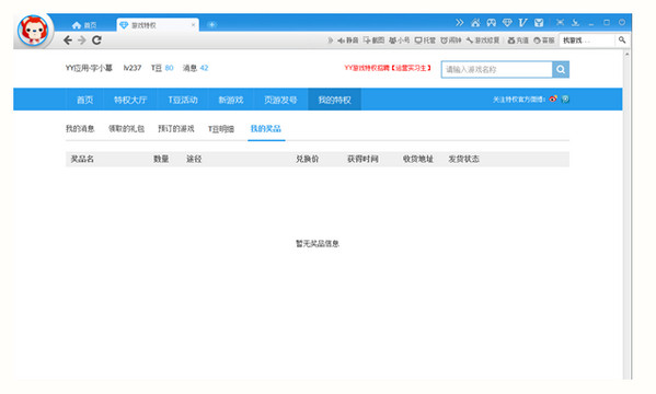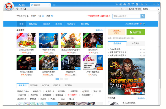 進入游戲特權首頁可以查看最新游戲禮包消息