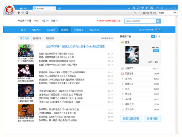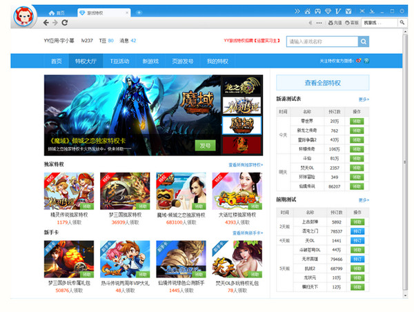 特權大廳可以查看新游游戲測試時間