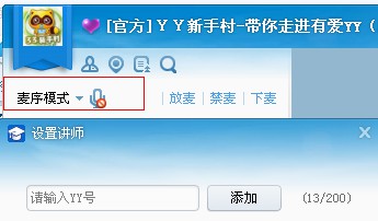2.打開直播頻道麥序模式-并且在YY教育工具箱添加權限