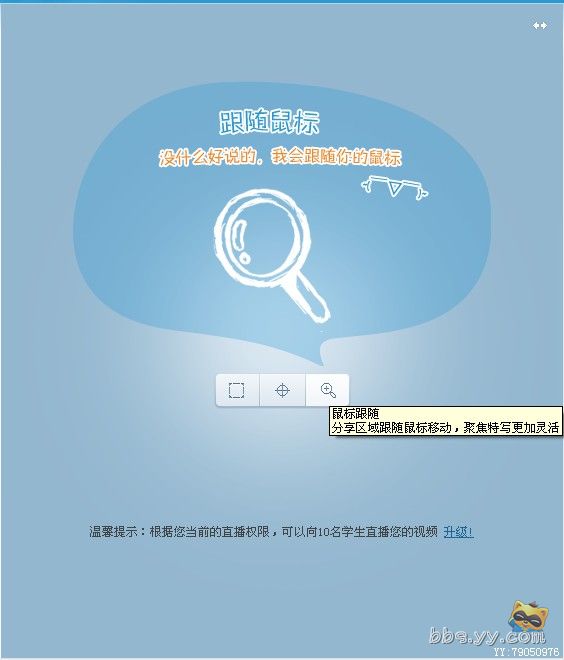 跟隨鼠標功能,直播訪問比較小,只是有一個正方形的訪問。不可以隨意調整