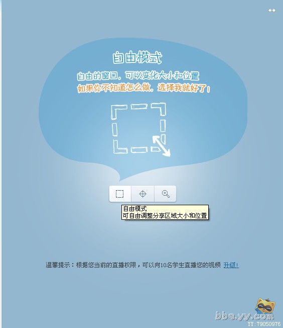 自由模式缺陷:雖然可以自由的變換直播范圍,但是隨著范圍增大,字體就會模糊不清,使用的時候要注意。“跟隨模式”