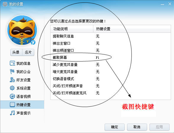 找到熱鍵設(shè)置,如果大家看到了,點(diǎn)擊熱鍵設(shè)置 ,可以在鍵盤上隨意輸入您想要的快捷鍵即可,點(diǎn)擊應(yīng)用。看下圖