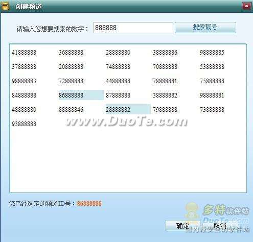 在搜索框里輸入您想要的頻道,例如888888,系統就會自動幫您選出包含888888的ID