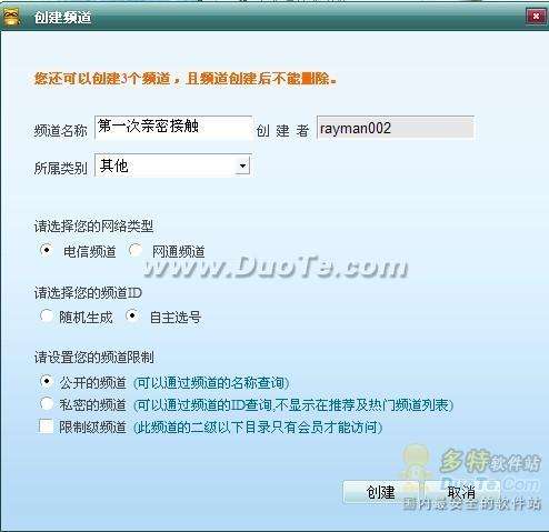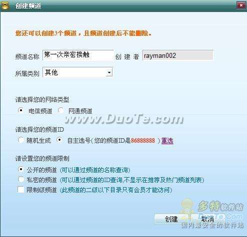 頻道信息的盡可能完善,可以在其它用戶使用查找的時候更方便的找到您的頻道。頻道類型包括:
