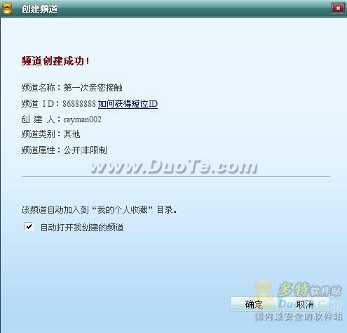 4.按照提示填寫相關資料點擊確定完成創建,頻道就創建成功了會自動出現在“我的收藏”中。