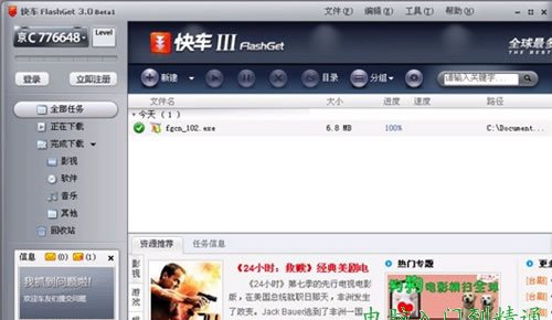快車3的廣告比迅雷更加猖狂,有主界面上部橫幅廣告、新建任務對話框橫幅廣告和屏幕右下角彈出窗口廣告。手動去除這些廣告最重要的一步就是要找到FlashGet 的datstatadvertisement 文件夾。我的Windows7系統是在C:UsersAdministratorAppDataRoamingFlashGetv3datstat 里面。