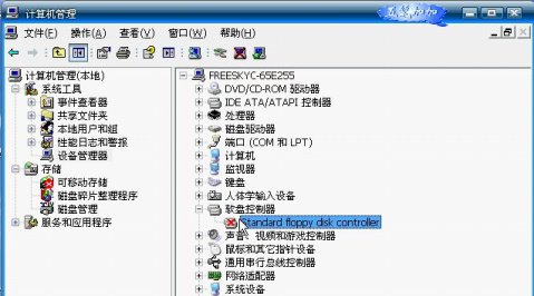 2、如果選擇停用軟盤控制器,軟盤控制器上就會出現一個紅叉,而軟盤驅動器就會自動消失