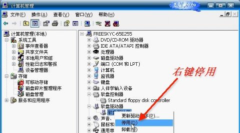 右鍵在軟盤驅動器上選擇停用(如果沒有軟驅可以選擇卸載)