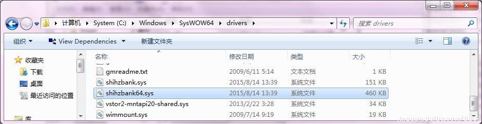 2、刪除文件,通過第1步定位到驅動對應的注冊表鍵后,ImagePath字段對應的文件目錄為syswow64driversshihzbank64.sys,打開C:windowssyswow64drivers刪除shihzbank64.sys即可。