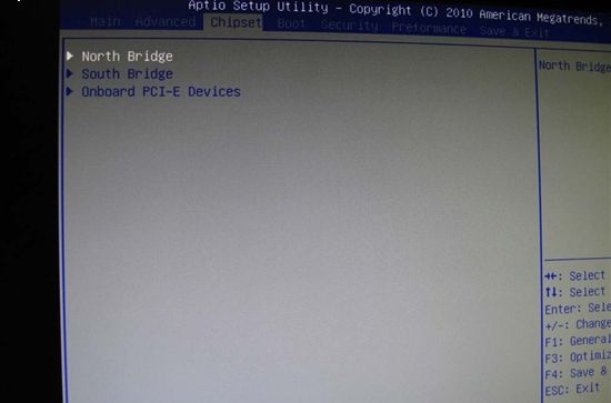1、開機的時候按DEL進入BIOS,集顯調節位置在 Chipset - North Bridge子項里面。
