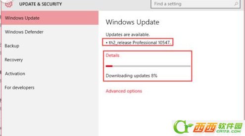 4、在“Update&security”窗口,檢測到微軟推送的build 10547更新“th2_release Professional 10547”,系統會自動下載該更新;