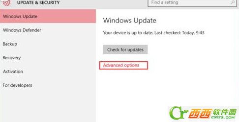 2、進入“Update&security”窗口,點擊右側的“Advanced options”,