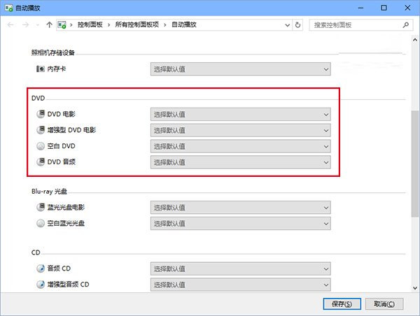 ?、?點擊“保存”后,再次放入DVD光盤后就可以用Win10版DVD播放器自動播放了