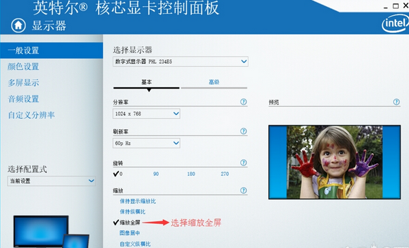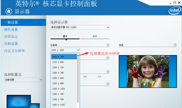 其他選項(xiàng)不需要改動,設(shè)置完成后退出控制面板,再用下圖方式調(diào)回平常用的分辨率,進(jìn)入游戲就會自動調(diào)整分辨率實(shí)現(xiàn)全屏,退出后又不影響正常使用。