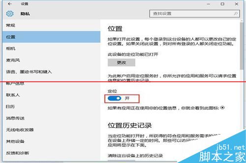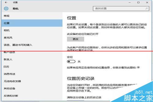 3、在打開的設置功能中,看右邊面板,定位功能是關閉的