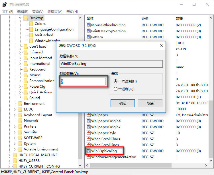 3. 找到Win8DpiScaling,將數(shù)值數(shù)據(jù)修改為1(如下圖);