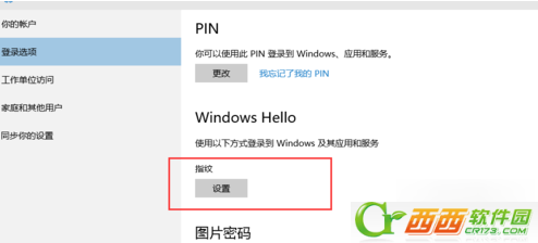 4、設置好密碼和pin碼之后,可以進行win10指紋識別的設置,點擊指紋識別下面的設置,進入下一頁面,點擊開始