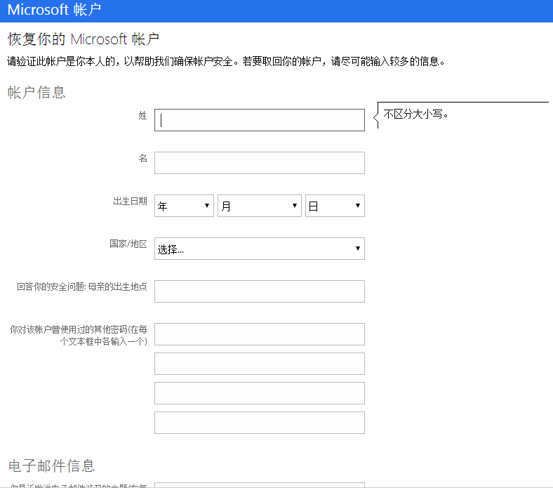 這時會列出很多問題,需要您回答,不一定要全部回答,但是問題回答的越詳細,對您重置密碼就越有利,回答完成后,點“提交”,然后就耐心等待微軟回復了?;貜偷男畔l送到要求轉入的聯系郵箱中。