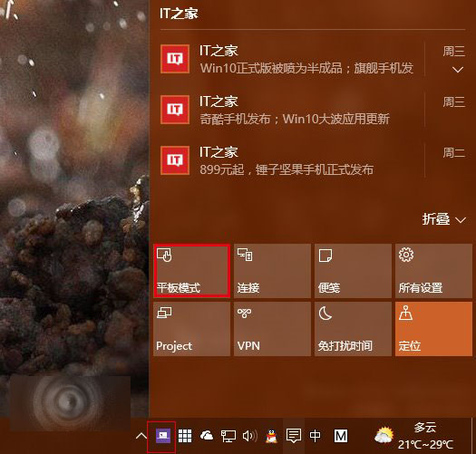此時(shí)嘗試切換平板模式,會(huì)發(fā)現(xiàn)任務(wù)欄自動(dòng)隱藏已經(jīng)生效。需要注意的是,在使用開(kāi)始屏幕時(shí),不會(huì)隱藏任務(wù)欄。