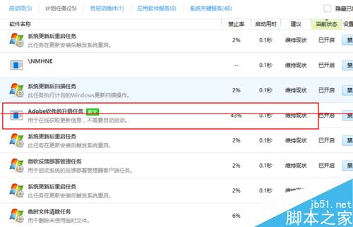 8、在啟動項中尋找ADOBE升級服務。