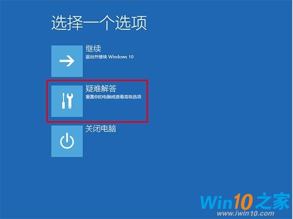 2. 稍等片刻之后,會(huì)進(jìn)入到下面這個(gè)界面,這里我們要選擇“疑難解答”;