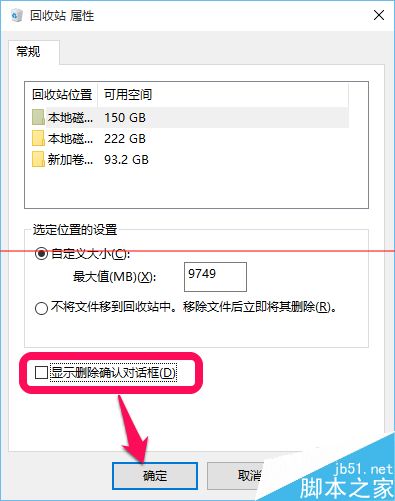 4、接著,在“回收站 屬性“窗體中,勾選最下面的”顯示刪除確認(rèn)對話框“。最后確定一下即可。