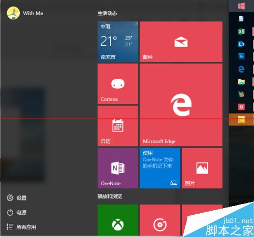 打開“開始菜單”之后,將鼠標移動到開始菜單的邊緣,點擊鼠標左鍵不放并拖動。可將分組的磚塊并列顯示。可拖動上邊和右邊進行改變菜單大小。