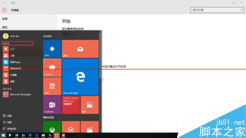 2、調整開始菜單的位置(或者win10開始菜單的高度和寬度設置)