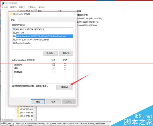 10、進入”ShellFolder“的權限之后,我們點擊高級。
