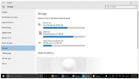 1、進入你的存儲設置,你可以直接在Cortana里鍵入“存儲”,或者進入系統區域中設置應用、選擇存儲的地方。一旦進入了,你就能看到設備的每個獨立的存儲空間。這將允許你輕松地管理你各種形式的存儲空間。