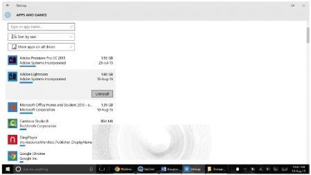 5、打開應用和游戲,你會看到每個程序和應用占用了多少空間,現在使用情況如何。這可以同時展示像Adobe Premiere Pro之類的程序,以及像SlingPlayer之類的應用。你可以簡單地通過點擊它們,再選擇卸載,而去卸載掉它們中的任何一個。