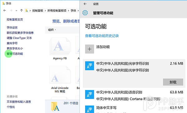 文檔之間的兼容很多時候是字體的原因?qū)е碌模琖indows10 里提供了簡體和繁體中文的額外字體供選擇安裝,另外還可以管理添加其他語言的語音包、OCR文件包(當前語言的語音包、OCR包默認已安裝)。