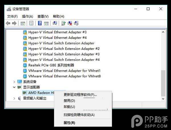 ▲找到顯卡,在右鍵菜單中禁用顯卡或卸載顯卡驅動