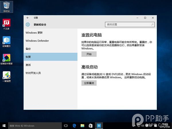 ▲打開設置—更新和安全—恢復—點擊高級啟動中的“立即重啟”