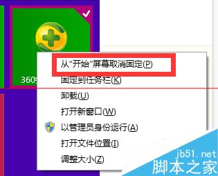2、然后直接右擊,選擇從“開(kāi)始屏幕”取消固定,即可解除
