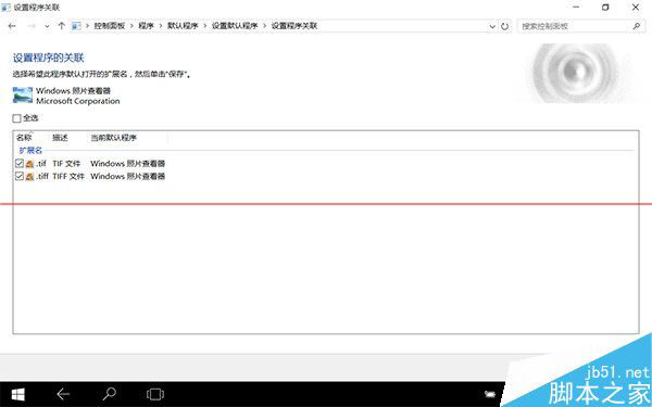 ▲控制面板中的文件關(guān)聯(lián)中照片查看器只能選擇與tiff文件進行關(guān)聯(lián)