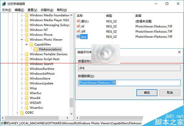 其他類型圖片設(shè)置方法同上,在添加注冊表鍵值時,數(shù)值數(shù)據(jù)一律填寫為“PhotoViewer.FileAssoc.Tiff”。