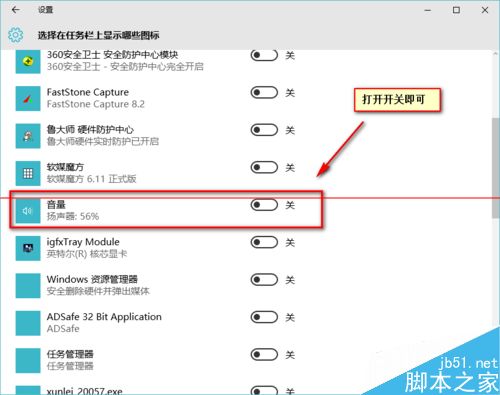 8、彈出下面的窗口,在這個窗口中找到音量選項,將其后面的開關打開即可